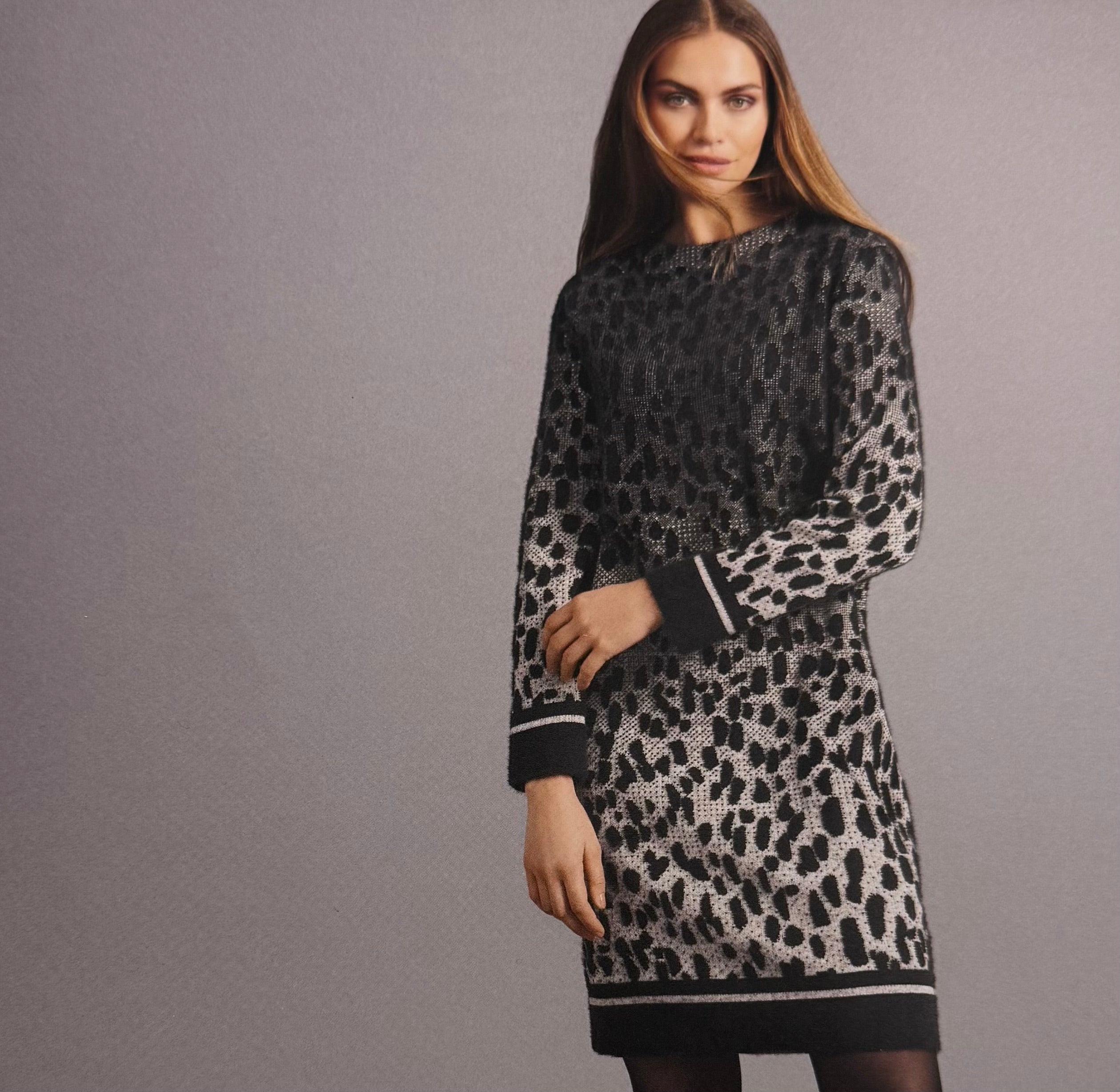 Brown & Beige Knit Sweater with Leopard and Glitter Details